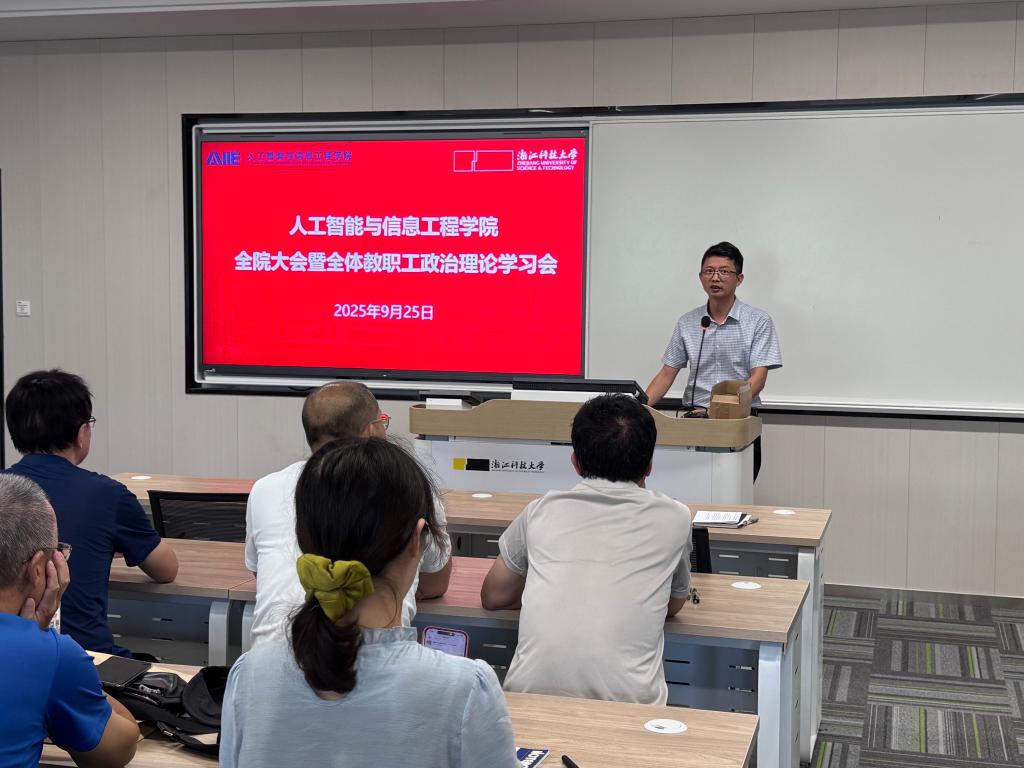 9月25日下午,学院在产教大楼-503组织召开全院大会暨教职工政治理论学习会议。会议由钱亚冠院长主持,全体教职工参会。大会首先组织全体教职工开展专项工作、师德师风和清廉等专题的政治理论学习。随后,施建腾副书记通报2025级新生报到情况,并进行2025届毕业生就业工作的动员。接着,钱亚冠院长作题为”学院正青春,发展正当时“的主题报告,他从学科定位与布局、人才队伍建设、人才培养规划、科研平台建设和制度建设等五方面...
