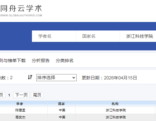该排行榜以学者发表的学术论文及其深度分析结果为核心评分依据,所有科学家的论文题录信息均向公众开放,便于读者追溯核实数据的准确性。在论文评估计分过程中,综合考虑了Metrics期刊评分、论文被引频次、论文类型、作者署名排位(论文贡献度)、作者H指数等多种反映学术影响力的关键因素,并赋予相应权重,力求精确评价学者的学术影响力。据悉浙江科技大学共有2人入选本次榜单。(数据来源于全球学者库,截至2026年4月15日)