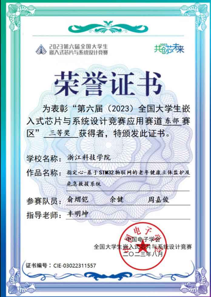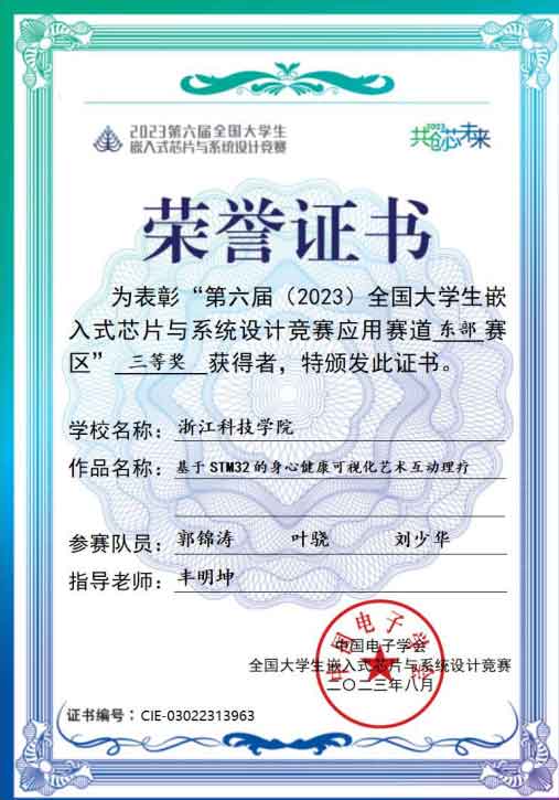 根据2023年全国大学生嵌入式芯片与系统设计竞赛工作计划和国、分赛区赛的安排,项目组在2022年底开始了竞赛宣讲和动员,2023年3月初初完成了学生组织和报名。充分利用暑假时间进行了管理、宣讲和参赛队员的在线知识培训,包括主管负责老师的政策解读、历史参赛成绩和参赛注意事项等。本届分赛区我校首次参赛,共有2对参赛组,全部获得华东分赛区三等奖。