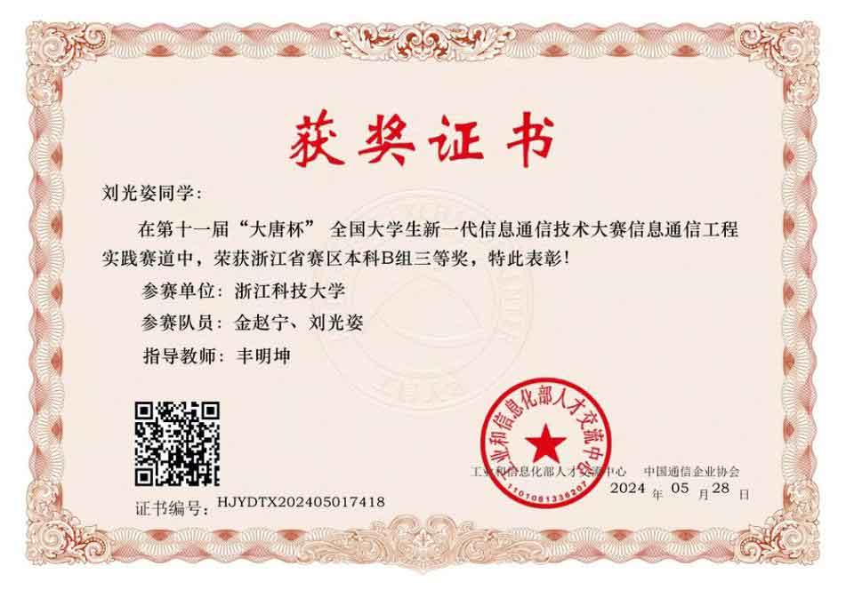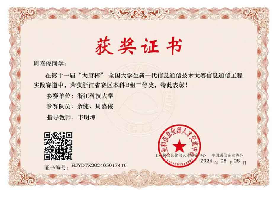 省赛:“大唐杯”全国大学生移动通信5G技术大赛浙江省赛事我校参与的是B组本科级别,不限我校参赛组数。